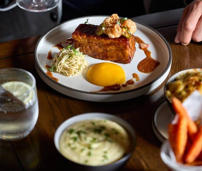 Available from Mondays to Fridays between 12 and 5 p.m., the menu features new starters, mains, and desserts recreating a modern British dining experience. Key customer draws include a watermelon salad for starters, a couple of valuable meaty mains (braised New Zealand lamb shoulder with smoked mashed potato and slow-roasted pork belly with sweet potato purée), and desserts that deliver a luxurious finish to the meal—salted peanut butter mousse and a house-made cannoli.
