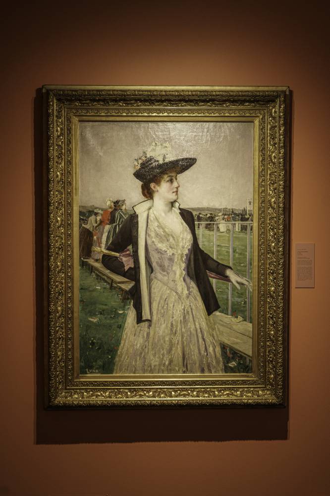 When you first enter the fair, Juan Luna’s “Lady at the Racetrack,” part of the Ayala Museum collection on the fifth floor, immediately stands out. Painted in the 1880s, it captures Spanish aristocratic fashion at the Hippodromo de la Castellana. Given Circuit Makati’s racetrack history, the piece feels uncanny, as if bridging the past and present of the space itself.