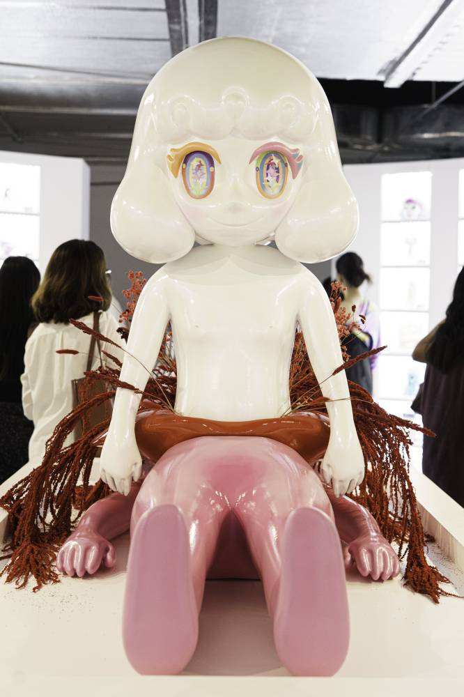 Coming up to the sixth floor, you’re greeted with sound and color in Yeo Kaa’s individual presentation with international gallery Ames Yavuz. The floor is designed with her distinct figures, while the entrance walls are lined with small works in glass niches, and a central sculpture features Yeo Kaa’s signature figure seemingly emerging from another lying red body.