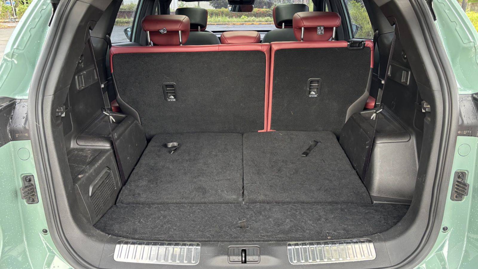 In addition, having the third row up results in a tiny cargo area that, sadly, doesn’t include a proper spare wheel. But once those perches are folded away, there is much more space behind the second row than in five-seat, plug-in crossovers like the BYD.