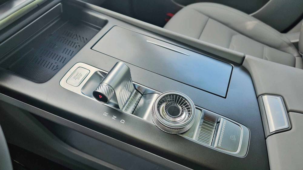 The driver is faced with a 10.25-inch display for the main instrument cluster. A 3-spoke steering wheel with auxiliary buttons for the cruise control and infotainment system is also standard. The center console features what BAIC calls ‘aviation inspired gear-lever’ and a jewel-like rotary dial for the in-car systems, drive mode and infotainment. A wireless charging pad and single USB-A outlet is on the center console, and multiple USB-C outlets on the back seat. There’s even a 220-volt AC outlet in the trunk to power larger devices.