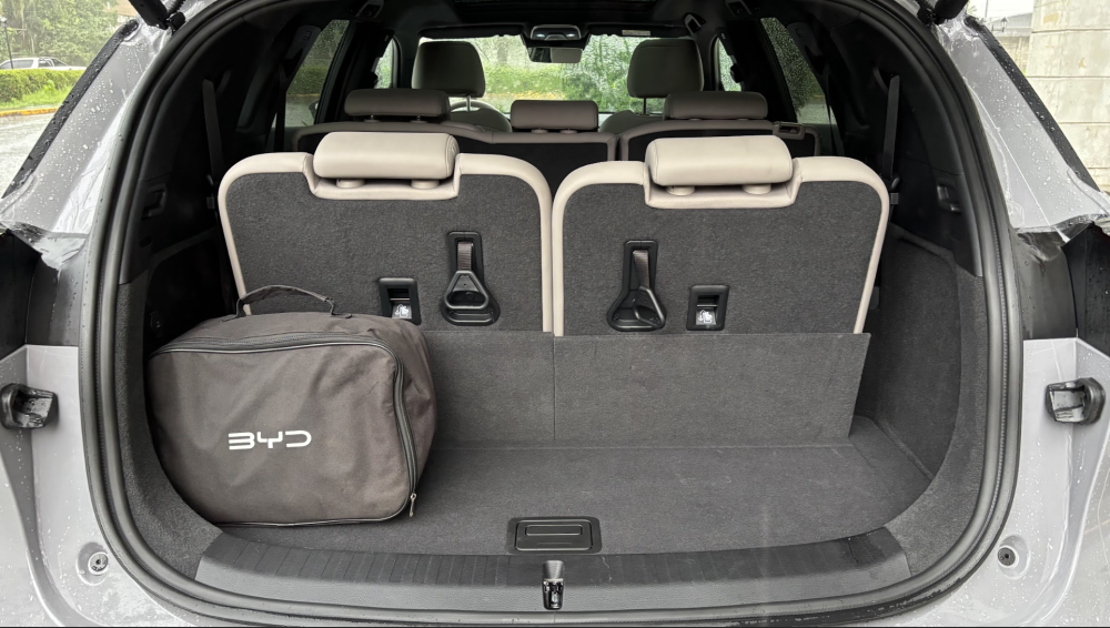 Despite the rather high ride height (standard side steps would be nice), this big BYD has a unibody chassis that not only offers superior shoulder room, but also generous legroom because of the relatively low and flat floor. The third-row seats have average space for the class, but the seating position is much better than its SUV rivals.