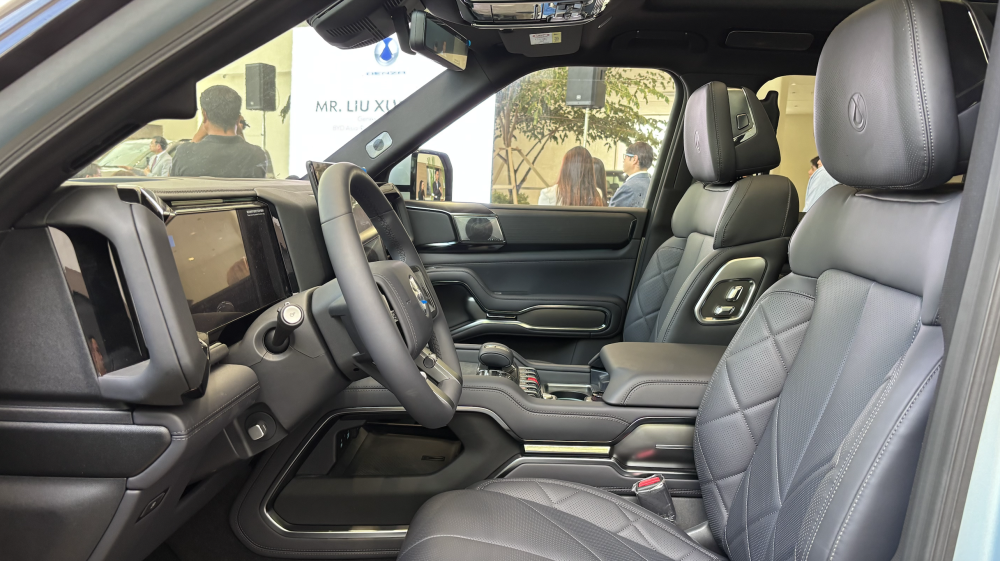 It uses a similar body-on-frame chassis and Super DM-O plug-in powerplant as the BYD Shark DMO pick-up truck, which means a turbocharged 1.5-liter gasoline generator mated to dual electric motors and a 31.8-kWh BYD Blade Battery. In other markets, combined output is a stunning 677 horsepower and 760 Newton-meters of torque.