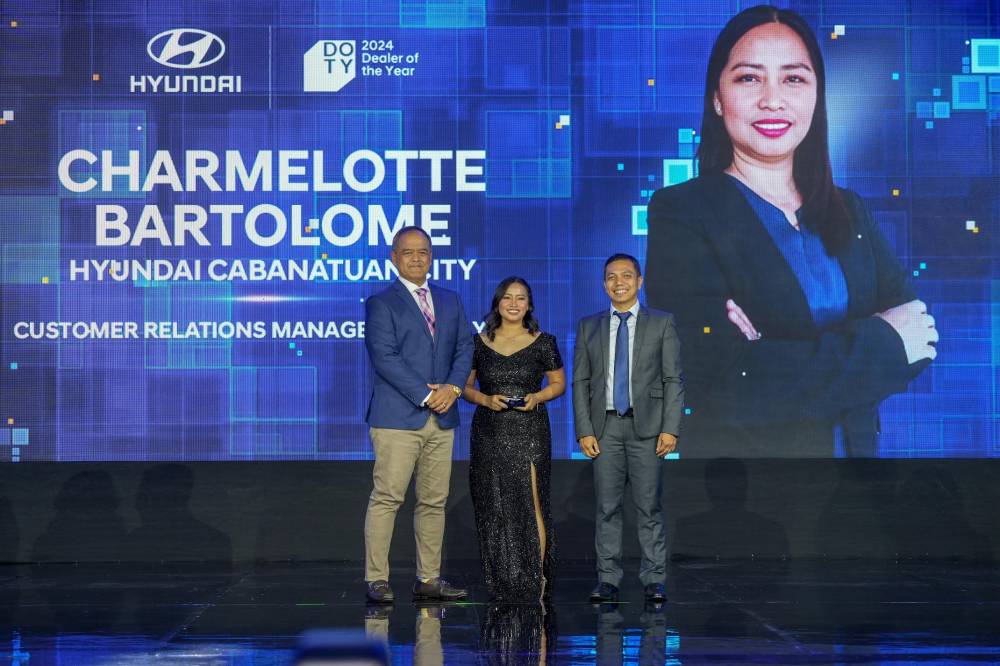 Catherine De Jesus of Hyundai Commonwealth was named Marketer of the Year, while the Service Manager of the Year and Customer Relations Manager of the Year accolades were given to Jayson Untalan of Hyundai Santiago City and Charmelotte Bartolome of Hyundai Cabanatuan City, respectively.