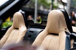 Inside, the exterior’s class and elegance are further spilled over. The awe-inspiring hue outside may have inspired its door upper door panels and AC vents, but the stark contrast of peach flesh-colored Nappa leather seats instantly shifts the appearance inside the cabin, evoking deep emotions of wonder and delight. Complementing these are the various 35th anniversary logos embossed on the seats and floor mats.