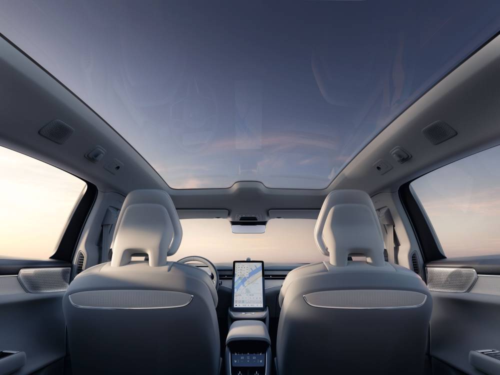 Finally, Volvo’s Front Shield replaces the traditional grill, but the large LED headlights retain the brand’s trademark “Thor’s Hammer” design. The ES90 likewise integrates seven cameras, 12 ultrasonic sensors and five radars for its active-safety suite, while the automatic spoiler shutter in the lower half of the fascia helps cool the high-voltage battery.
