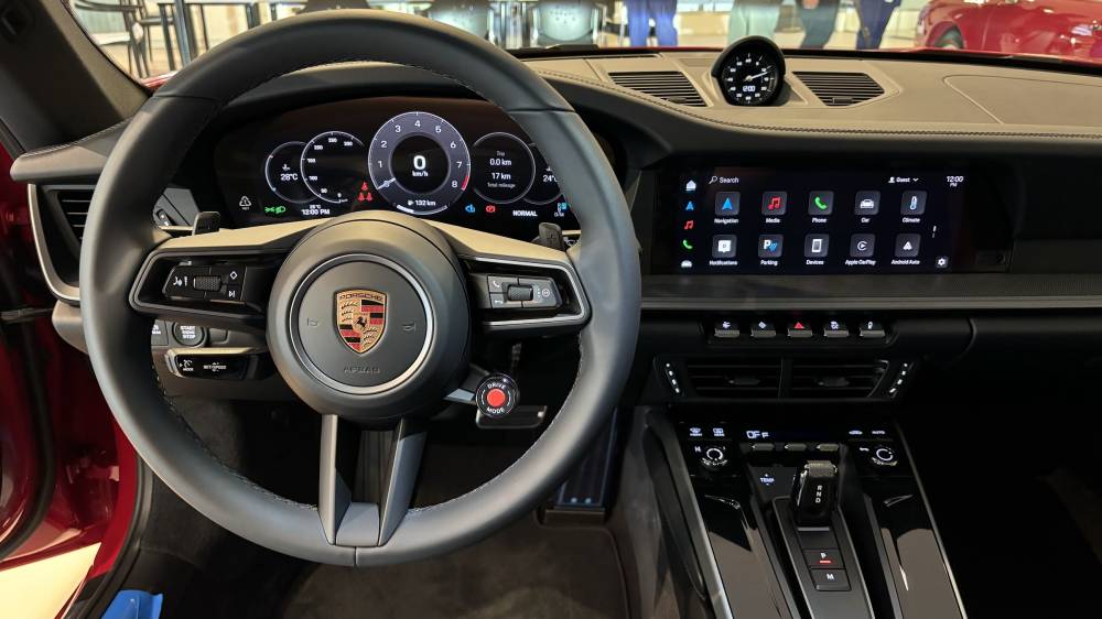 A fully digital cockpit replaces the traditional array of gauges from previous models – the 12.6-inch curved display has seven views, including an exclusive classic display that reanimates the traditional Porsche five-dial setup (with the tachometer naturally dead center).