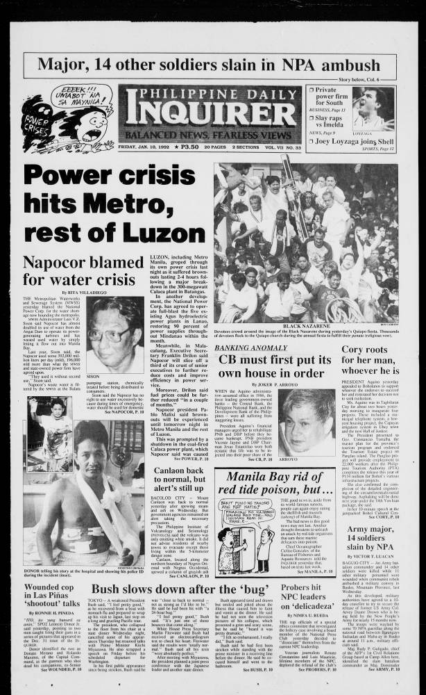 January 10, 1992: Power crisis hits Metro, rest of Luzon by Philippine Daily Inquirer January 10, 2024 January 10, 1992. 0 Comments