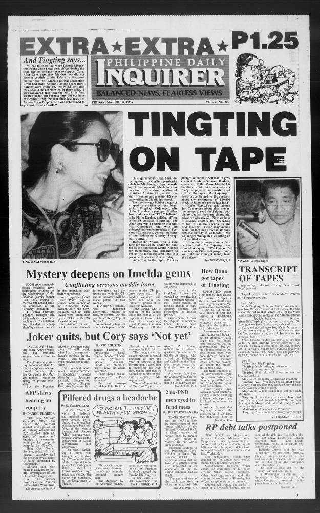 March 13, 1987: Tingting on tape by Philippine Daily Inquirer March 13, 2024 March 13, 1987 0 Comments
