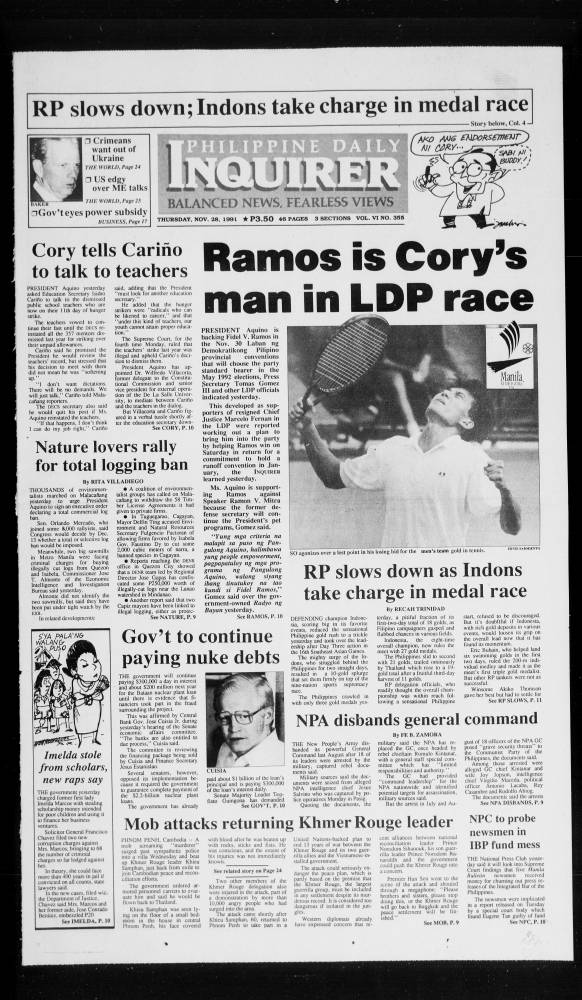 November 28, 1991: Ramos is Cory’s man in LDP race by Philippine Daily Inquirer November 28, 2023 November 28, 1991 0 Comments