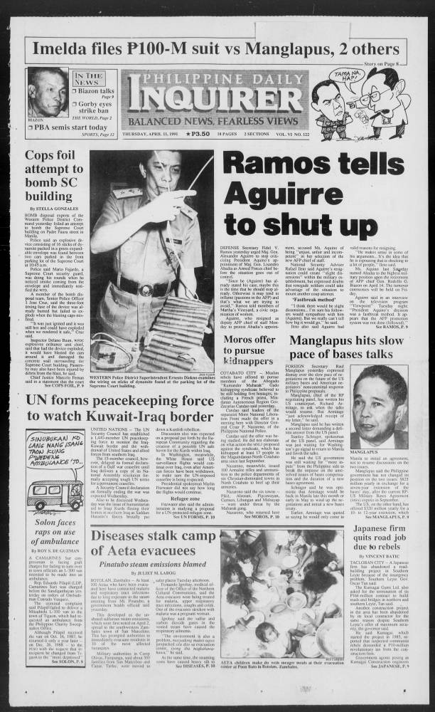 April 11, 1991: Ramos tells Aguirre to shut up by Philippine Daily Inquirer April 11, 2024 April 11, 1991. 0 Comments