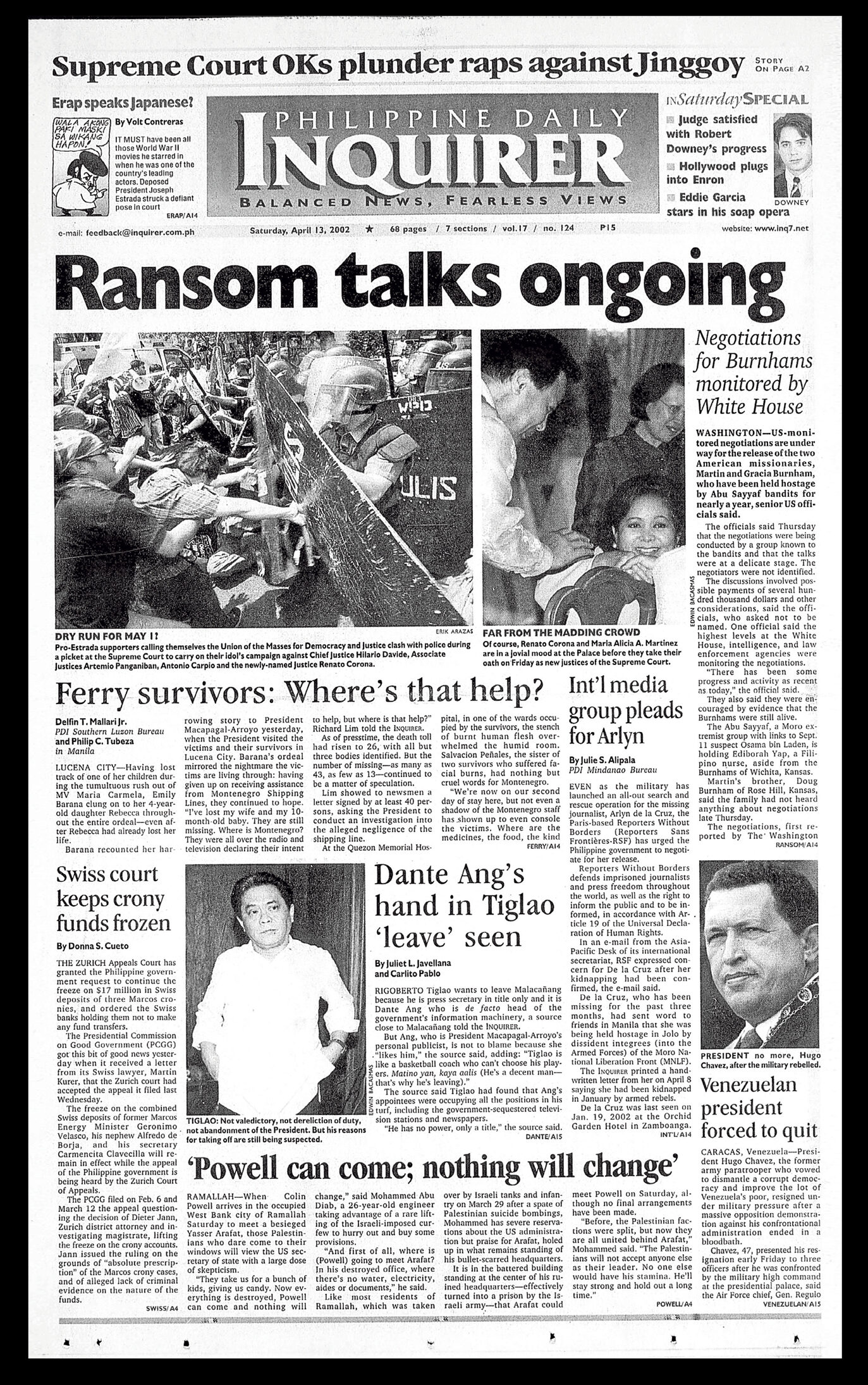 April 13, 2002: Ransom talks ongoing