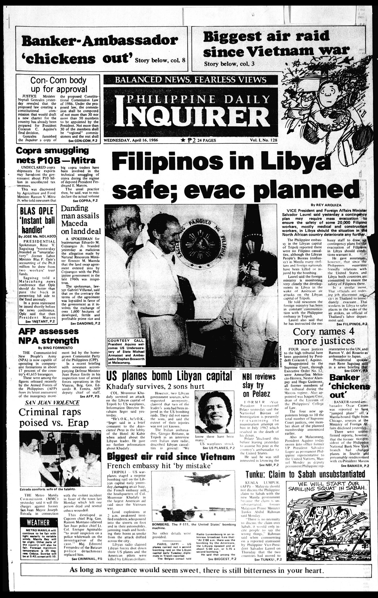 April 16, 1986: Filipinos in Libya safe; evac planned