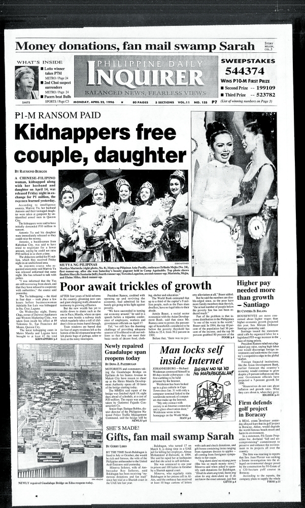 April 22, 1996: Kidnappers free couple, daughter