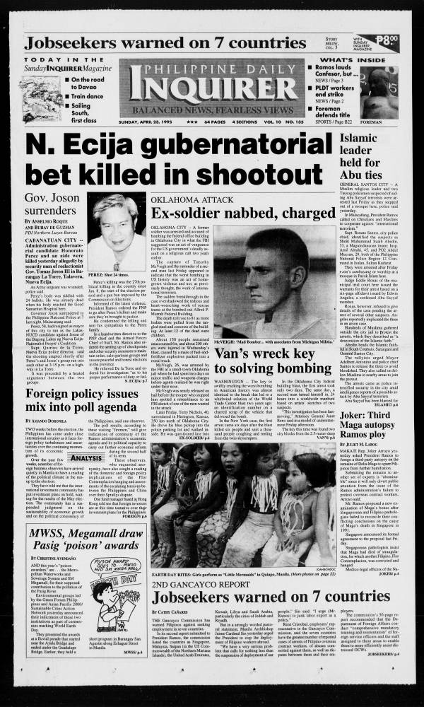 April 23, 1995: N. Ecija gubernatorial bet killed in shootout by Philippine Daily Inquirer April 23, 2024 April 23, 1995. 0 Comments