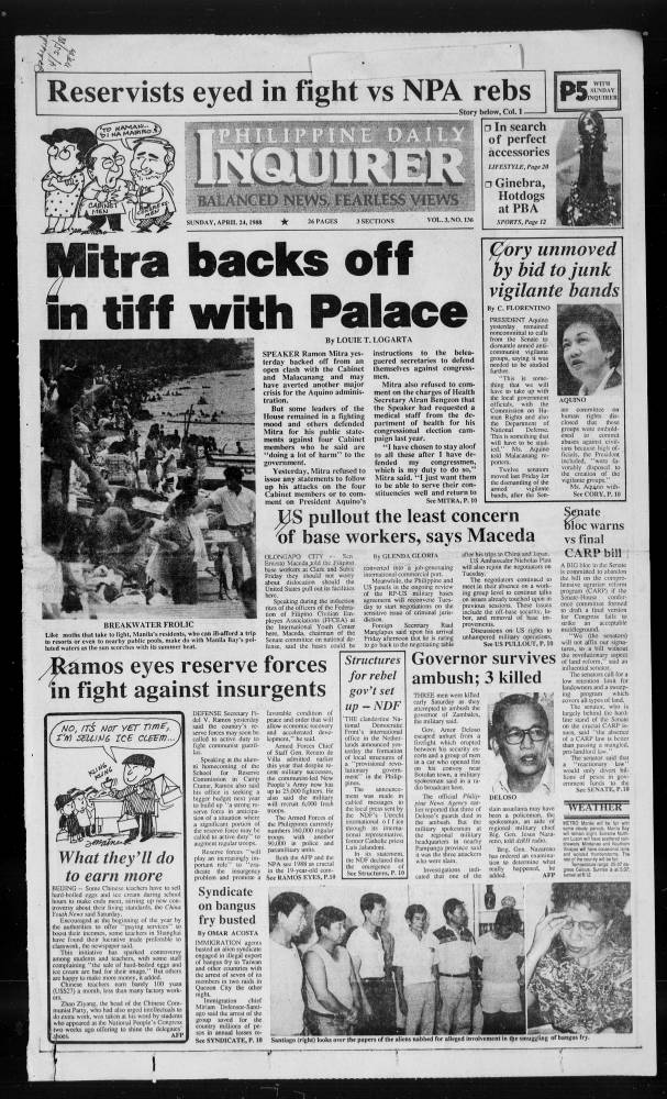 April 24, 1988: Mitra backs off in tiff with Palace by Philippine Daily Inquirer April 24, 2024 April 24, 1988. 0 Comments