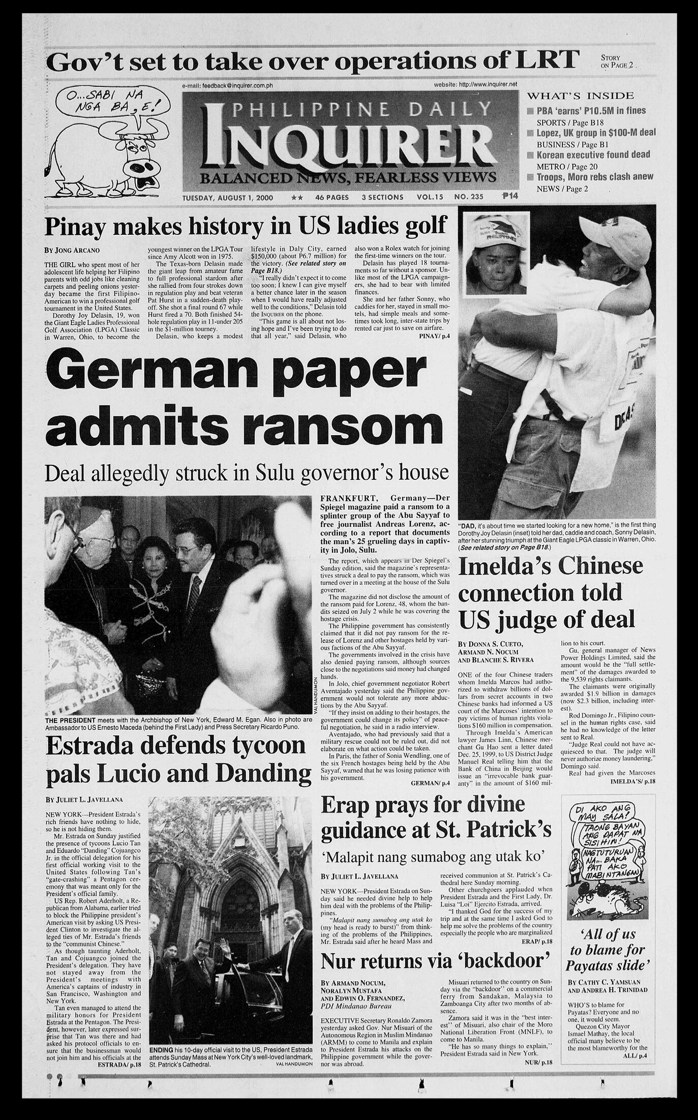 August 1, 2000: German paper admits ransom by Philippine Daily Inquirer August 1, 2025 August 1, 2000