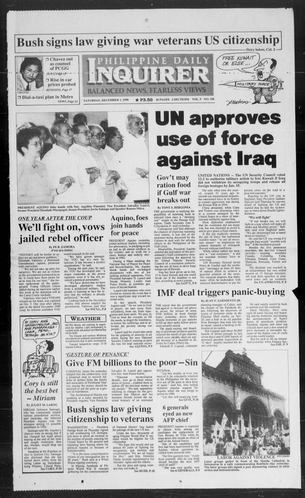 December 1, 1990: UN approves use of force against Iraq by Philippine Daily Inquirer December 1, 2023 December 1, 1990. 0 Comments