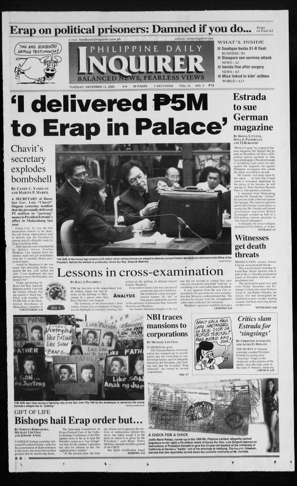 December 12, 2000: ‘I delivered P5M to Erap in Palace’ by Philippine Daily Inquirer December 12, 2023 December 12, 2000. 0 Comments