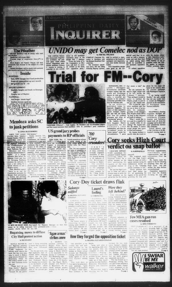 December 13, 1985: Trial for FM –Cory by Philippine Daily Inquirer December 13, 2023 December 13, 1985. 0 Comments