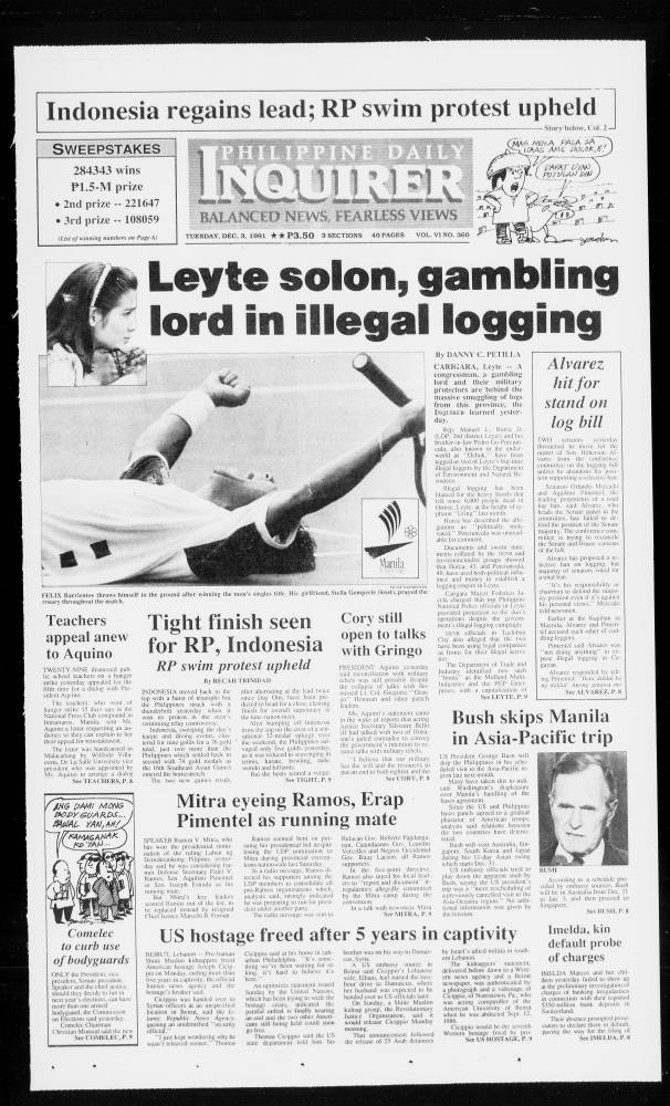 December 3, 1991: Leyte Solon, gambling lord in illegal logging by Philippine Daily Inquirer December 3, 2023 0 Comments
