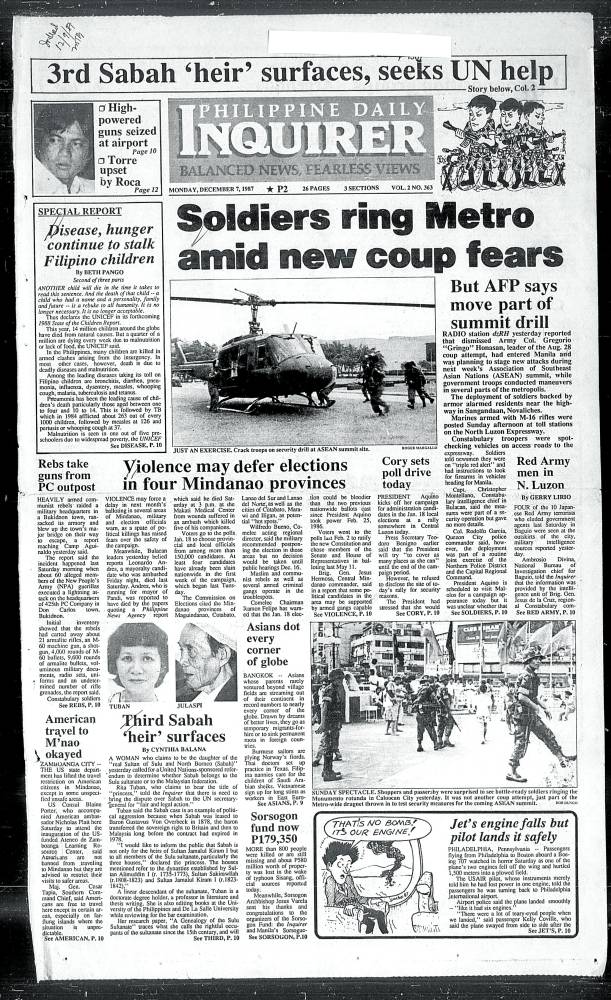 December 7, 1987: Soldiers ring Metro amid new coupe fears by Philippine Daily Inquirer December 8, 2023 . 0 Comments