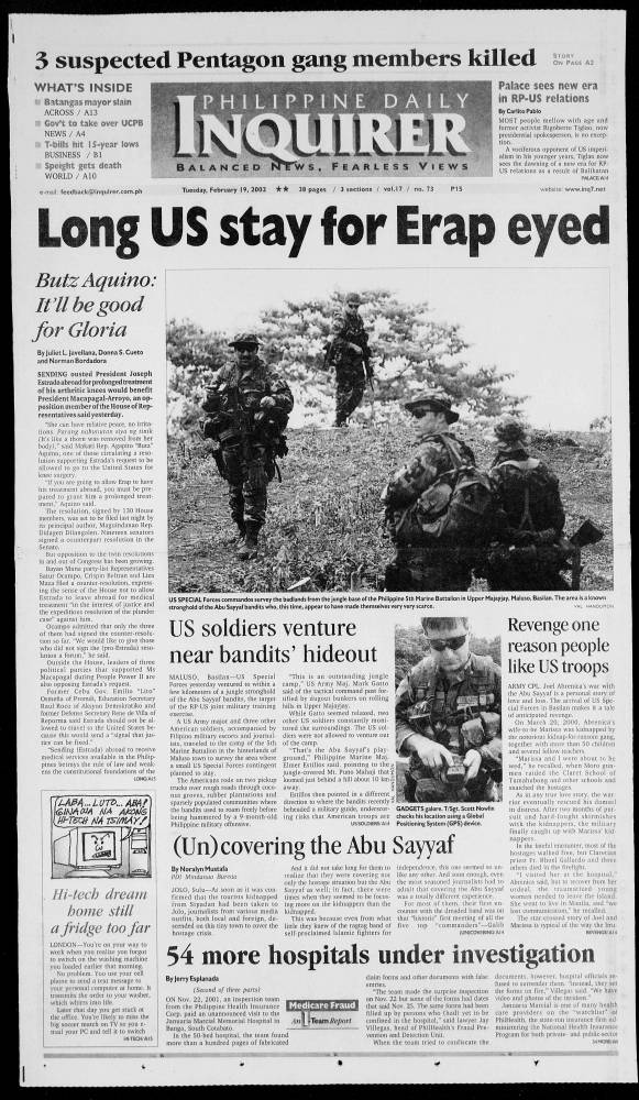 February 19, 2002: Long US stay for Erap eyed by Philippine Daily Inquirer February 19, 2024 February 19, 2002. 0 Comments
