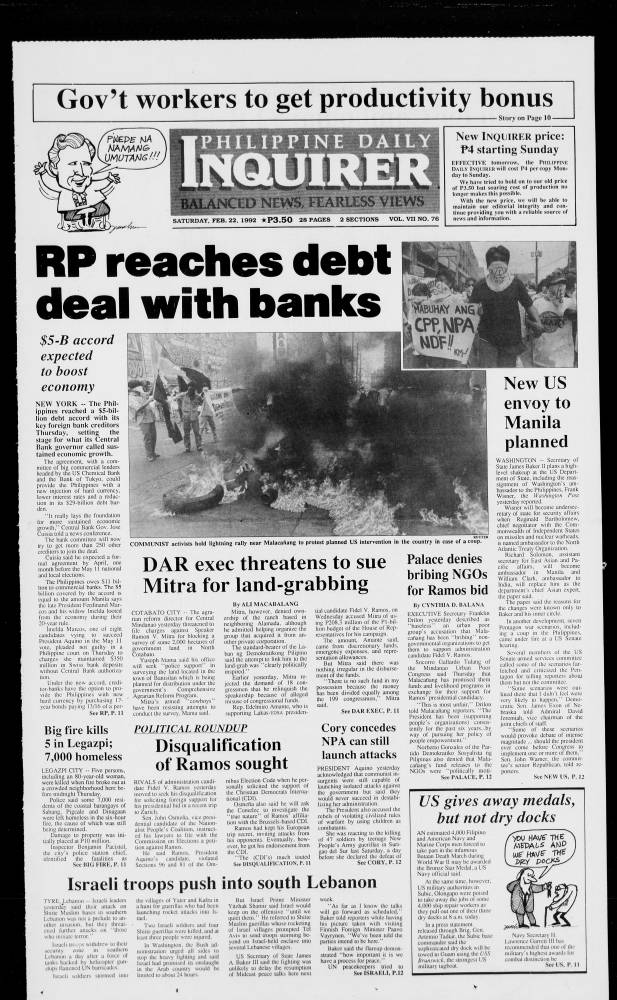 February 22, 1992: RP reaches debt deal with banks by Philippine Daily Inquirer February 22, 2024 February 22, 1992. 0 Comments
