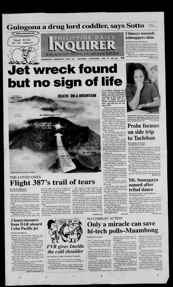 February 4, 1998: Jet wreck found but no sign of life by Philippine Daily Inquirer February 4, 2024 February 4, 1998. 0 Comments