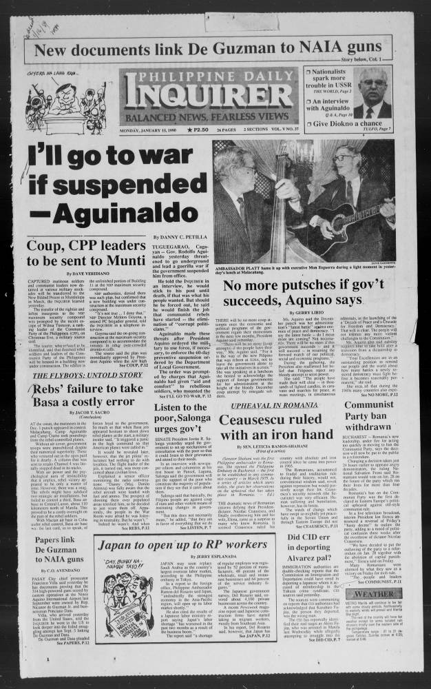 January 15, 1990: I’ll go to war if suspended -Aguinaldo by Philippine Daily Inquirer January 15, 2024 January 15, 1990. 0 Comments
