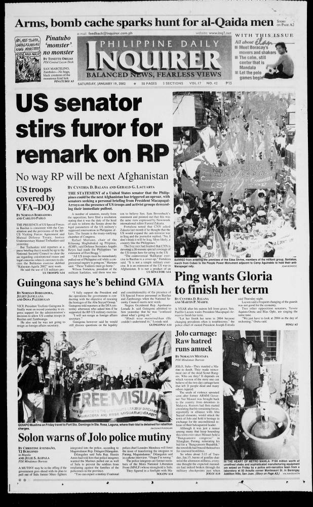 January 19, 2002: US senator stirs furor for remark on RP by newspublish January 19, 2024 January 19, 2002. 0 Comments