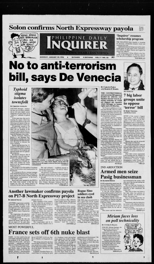 January 29, 1996: No to anti-terrorism bill, says De Venecia by Philippine Daily Inquirer January 29, 2024 0 Comments