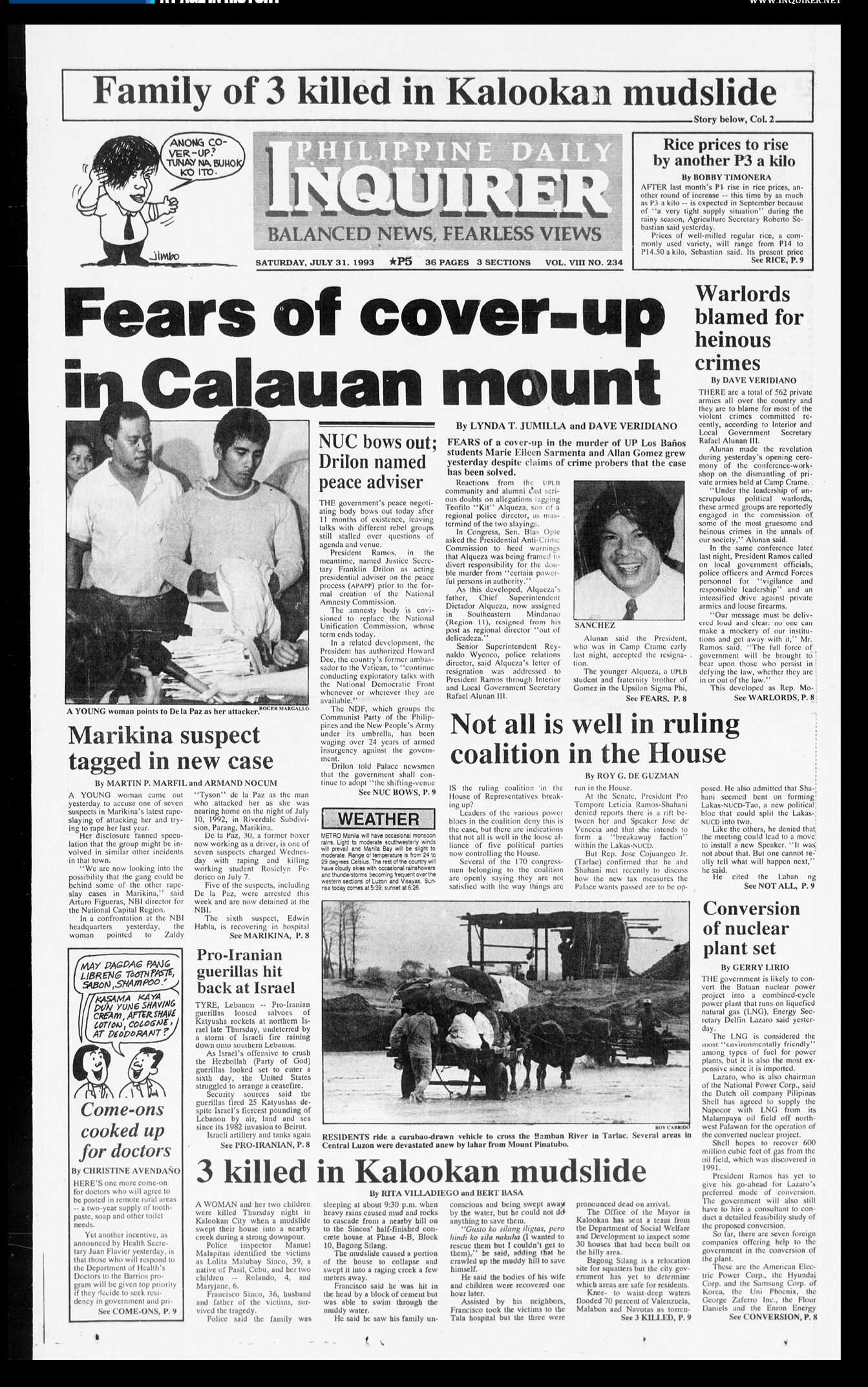 July 31, 1993: Fears cover-up in Calauan mount by Philippine Daily Inquirer July 31, 2025 July 13, 1993