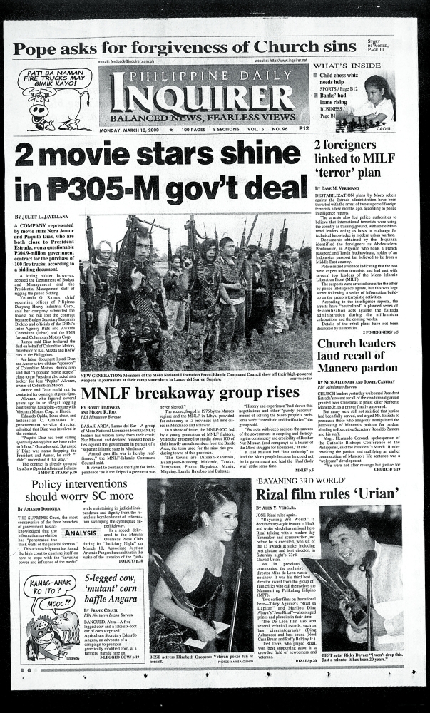 March 13, 2000: 2 movie stars shine in P305-M gov’t deal