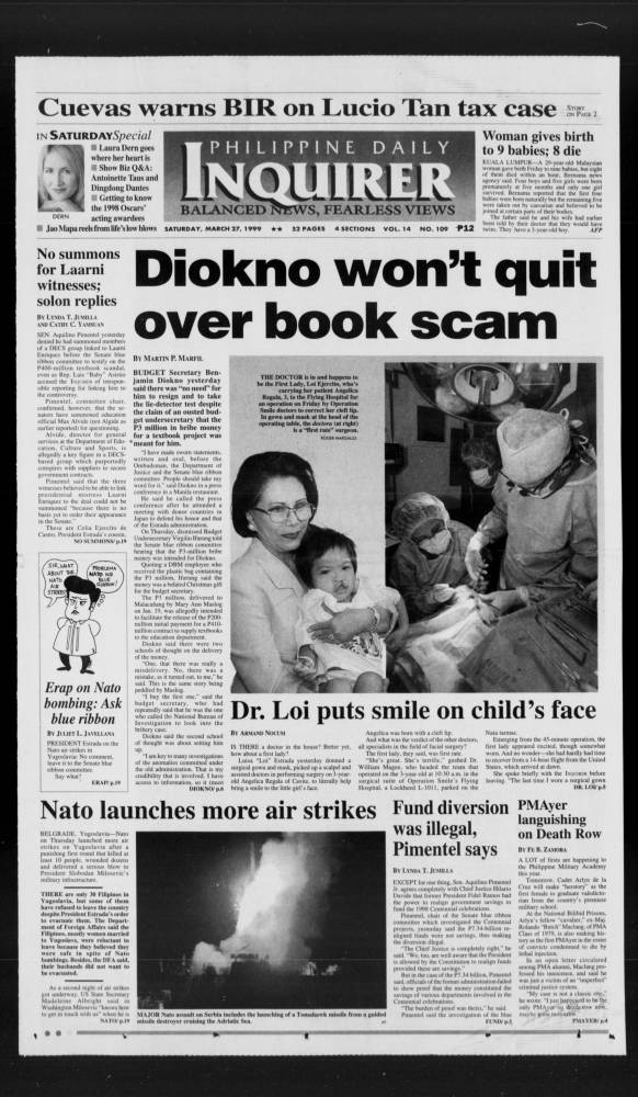 March 27, 1999: Diokno won’t quit over book scam by Philippine Daily Inquirer March 27, 2024 March 27, 1999. 0 Comments