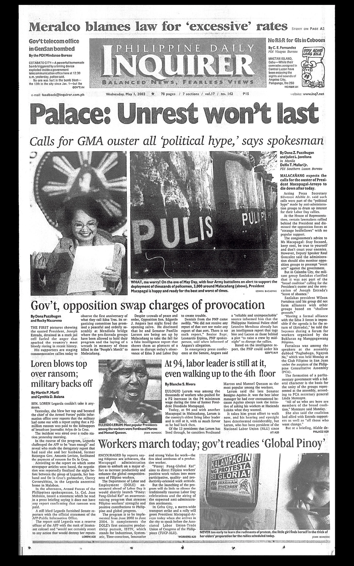 May 1, 2002: Palace: Unrest won’t last