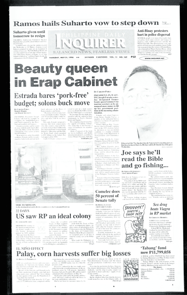May 21, 1998: Beauty queen in Erap Cabinet
