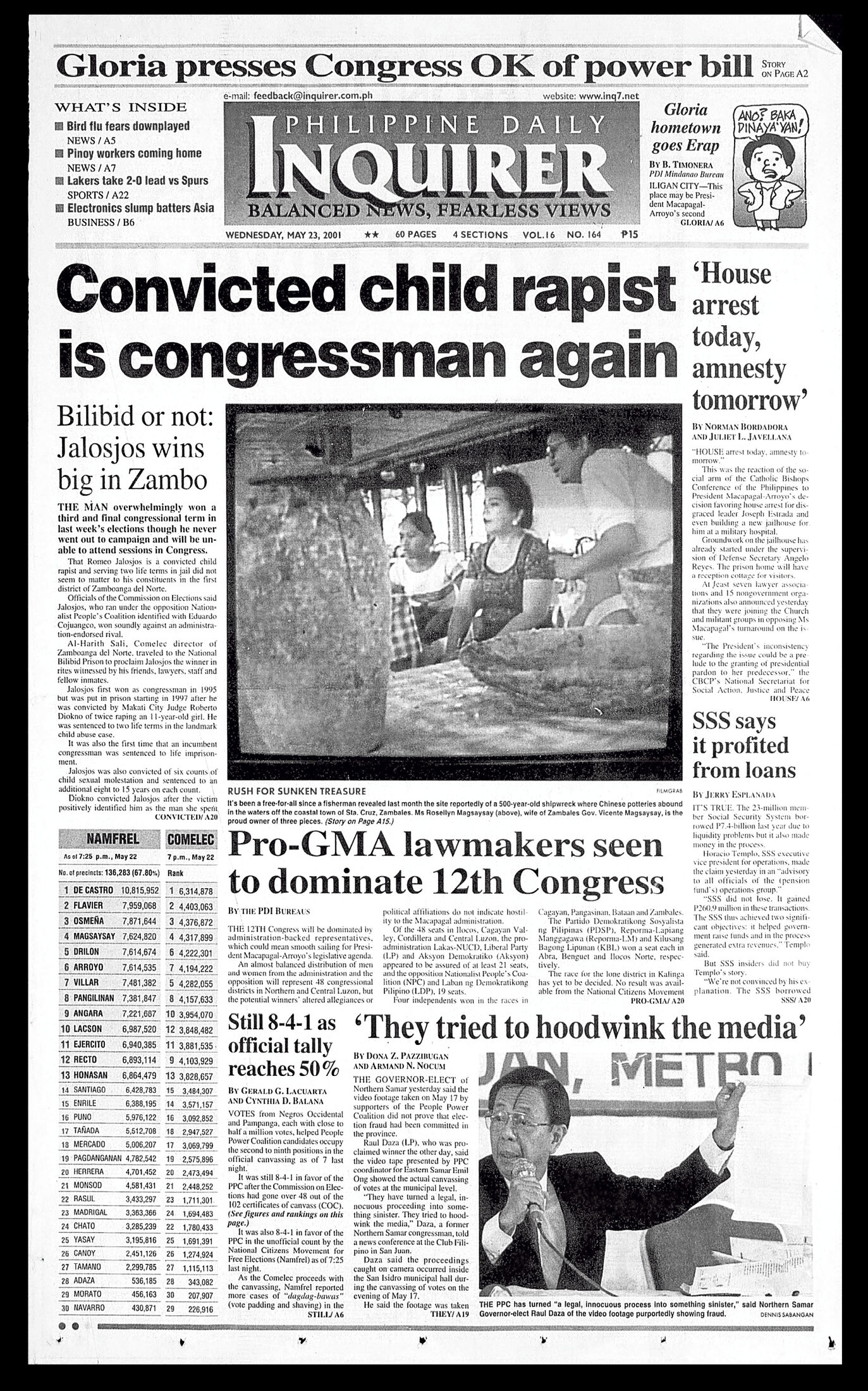 May 23, 2001: Convicted child rapist is congressman again by Philippine Daily Inquirer May 23, 2025 May 23, 2001
