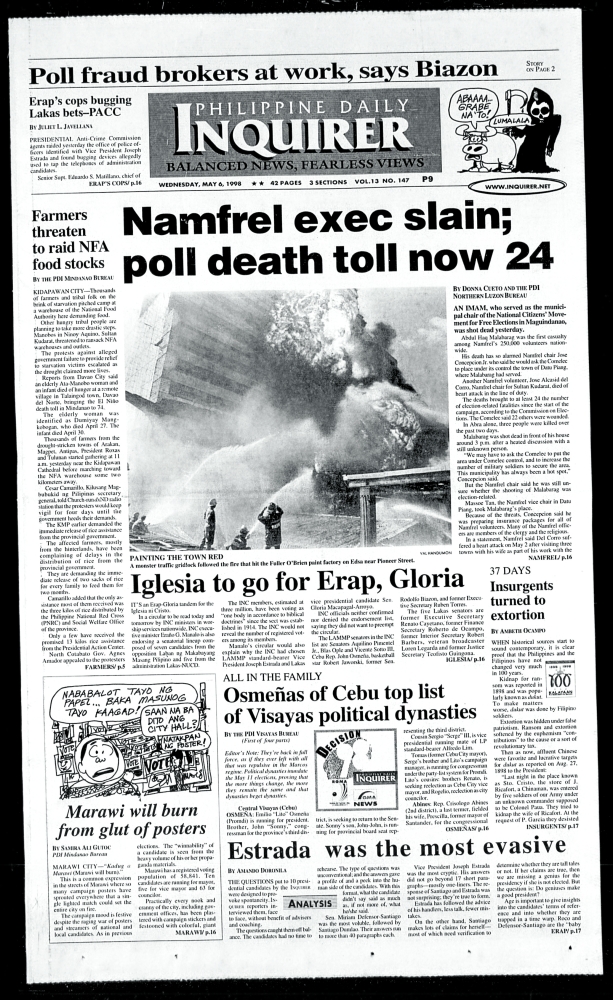 May 6, 1998: Namfrel exec slain; poll death toll now 24