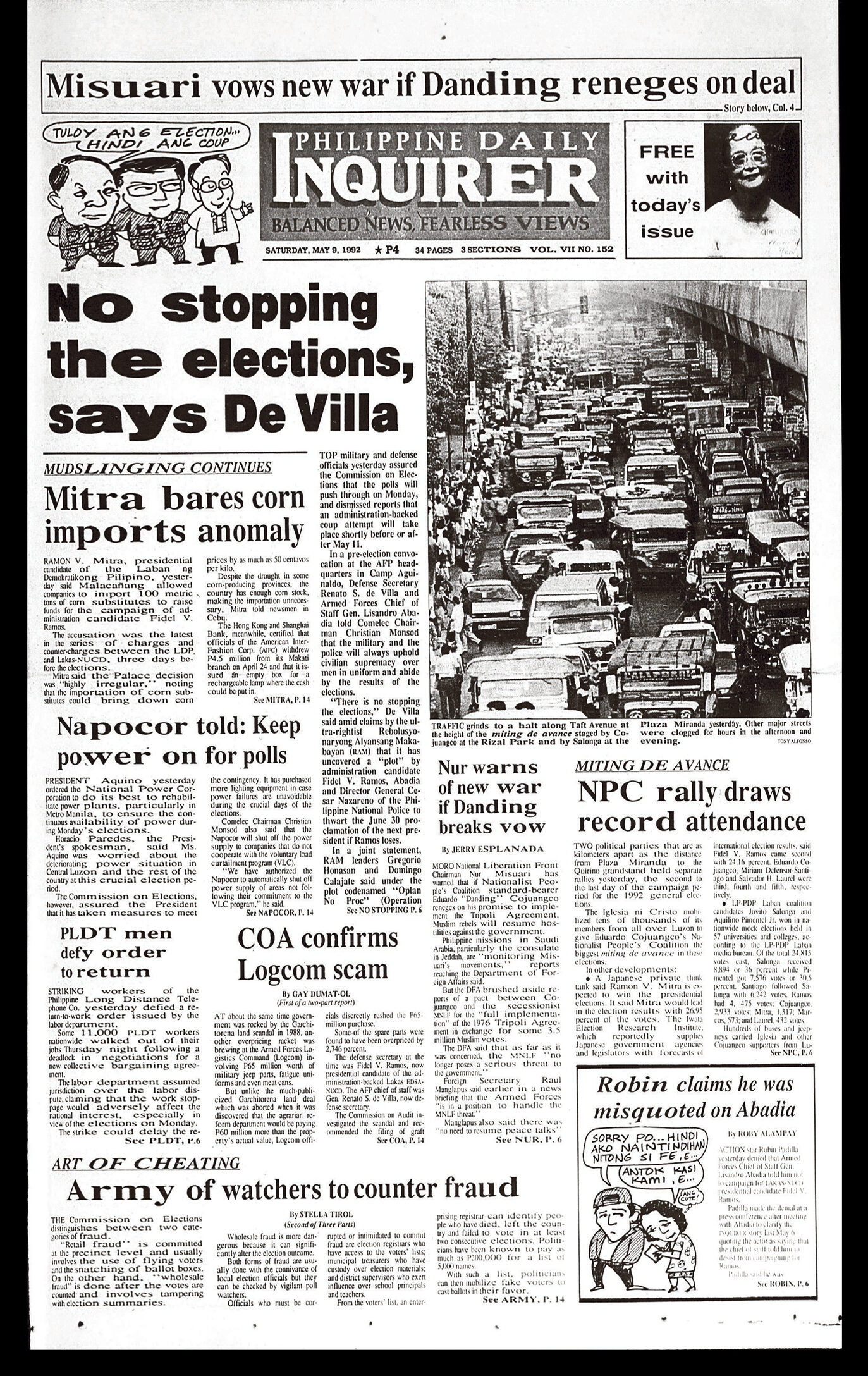 May 9, 1992: No stopping the elections, says De Villa by Philippine Daily Inquirer May 9, 2025 May 9, 1992