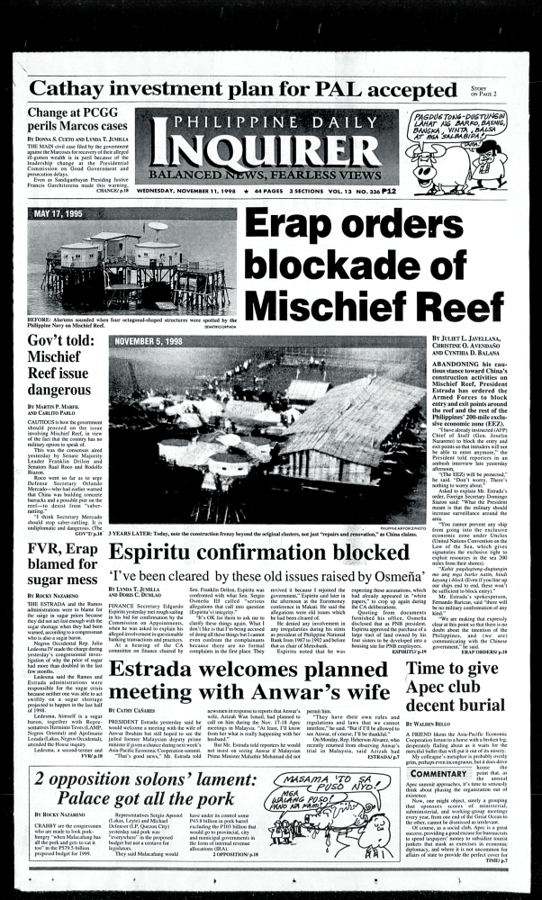 November 11, 1998: Erap orders blockade of Mischief Reef by Philippine Daily Inquirer November 11, 2024 November 11, 1998. 0 Comments
