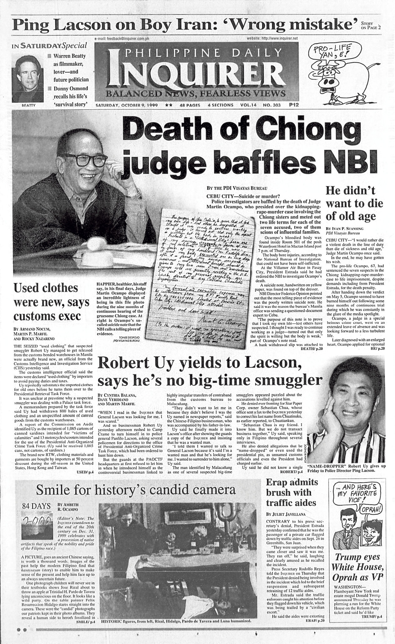 October 9, 1999: Death of Chiong judge baffles NBI by Philippine Daily Inquirer October 9, 2024 October 9, 1999 0 Comments
