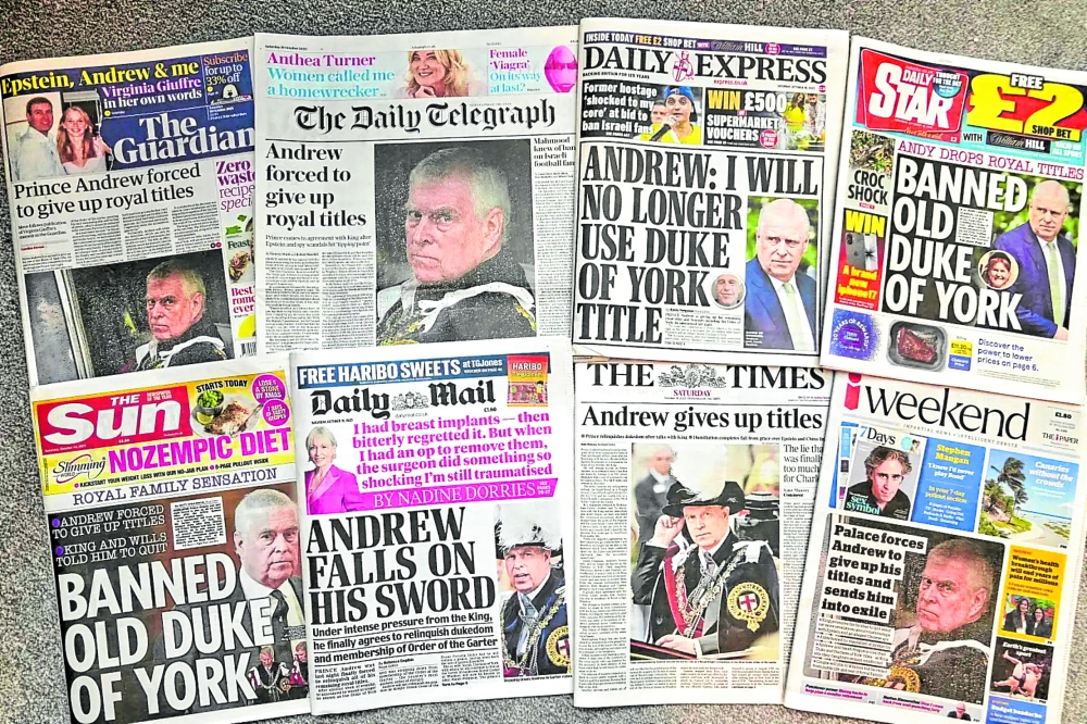 The king’s move means Andrew will no longer be referred to as prince, His Royal Highness, Duke of York, Earl of Inverness or Baron Killyleagh—all titles he held until now.