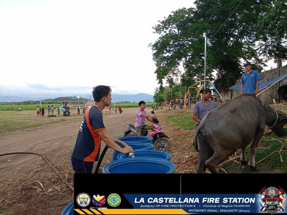 WATER RATIONING Some residents of La Castellana, Negros Occidental, who have been evacuated to safer areas since the eruption of Kanlaon Volcano on Dec. 9, 2024, continue to get government aid, including water supply from La Castellana fire station on Tuesday. —LA CASTELLANA FIRE STATION/FACEBOOK
