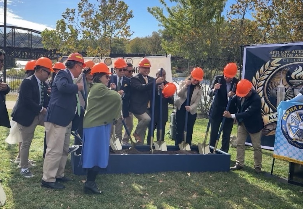 Prior to the Lafayette College visit, the group joined Alpha Phi Omega – Greater New York (APO-GNY) at Scott Park for the groundbreaking of the APO Centennial Obelisk, initiated by APO-GNY with Gamma Epsilon alumni as major supporters.