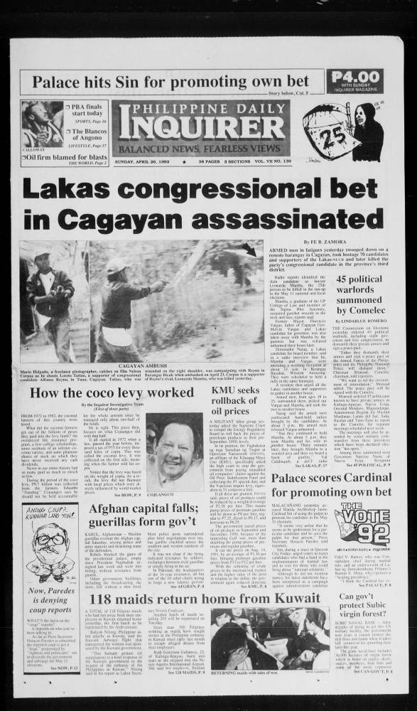 April 26, 1992: Lakas congressional bet in Cagayan assassinated by Philippine Daily Inquirer April 26, 2024 April 26, 1992. 0 Comments