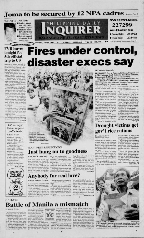 April 6, 1998: Fires under control, disaster execs say by Philippine Daily Inquirer April 6, 2025 April 6, 1998.