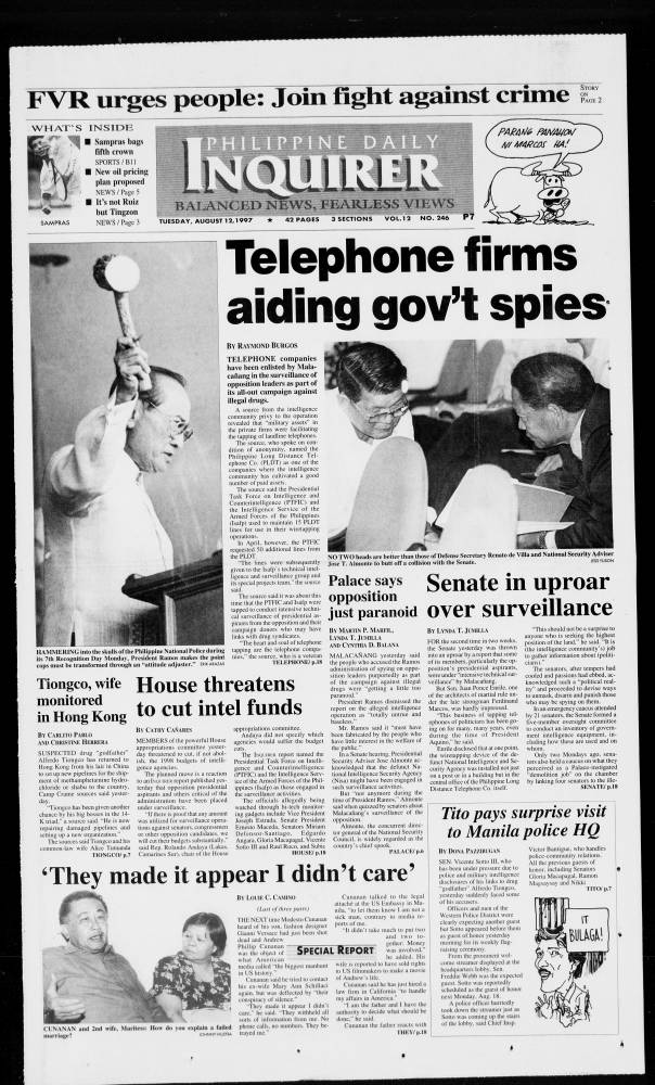 August 12, 1997: Telephone firms aiding gov’t spies by Philippine Daily Inquirer August 12, 2024 August 12, 1997 0 Comments