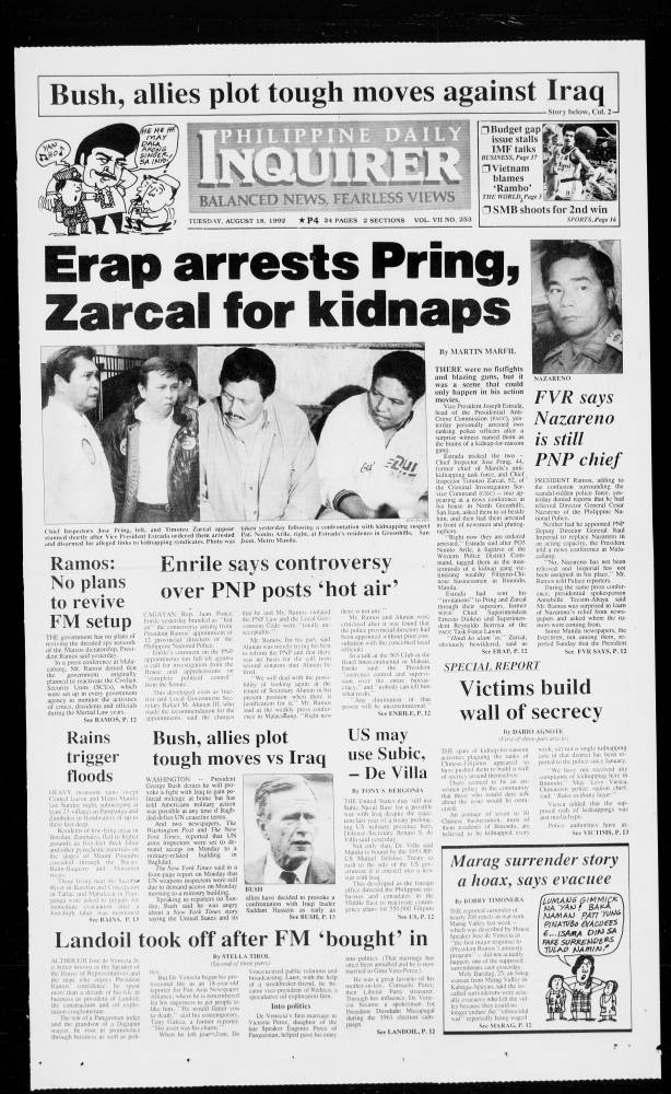 August 18, 1992: Erap arrests Pring, Zarcal for kidnaps by Philippine Daily Inquirer August 18, 2024 August 18, 1992. 0 Comments