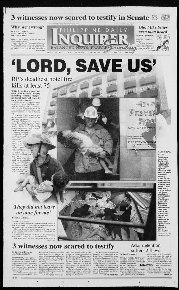 August 19, 2001: ‘Lord, save us’: RP’s deadliest hotel fire kills at least 75 by Philippine Daily Inquirer August 19, 2024 August 19, 2001. 0 Comments